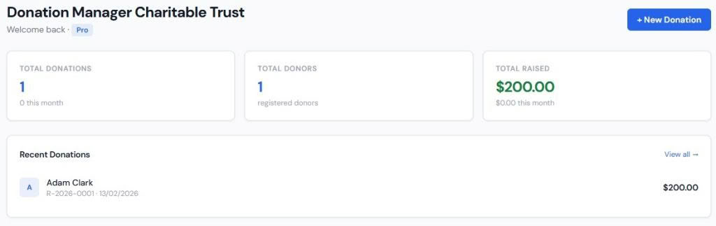 No caps on donor profiles or donation history — free or Pro. Your data is yours, as big as you need.